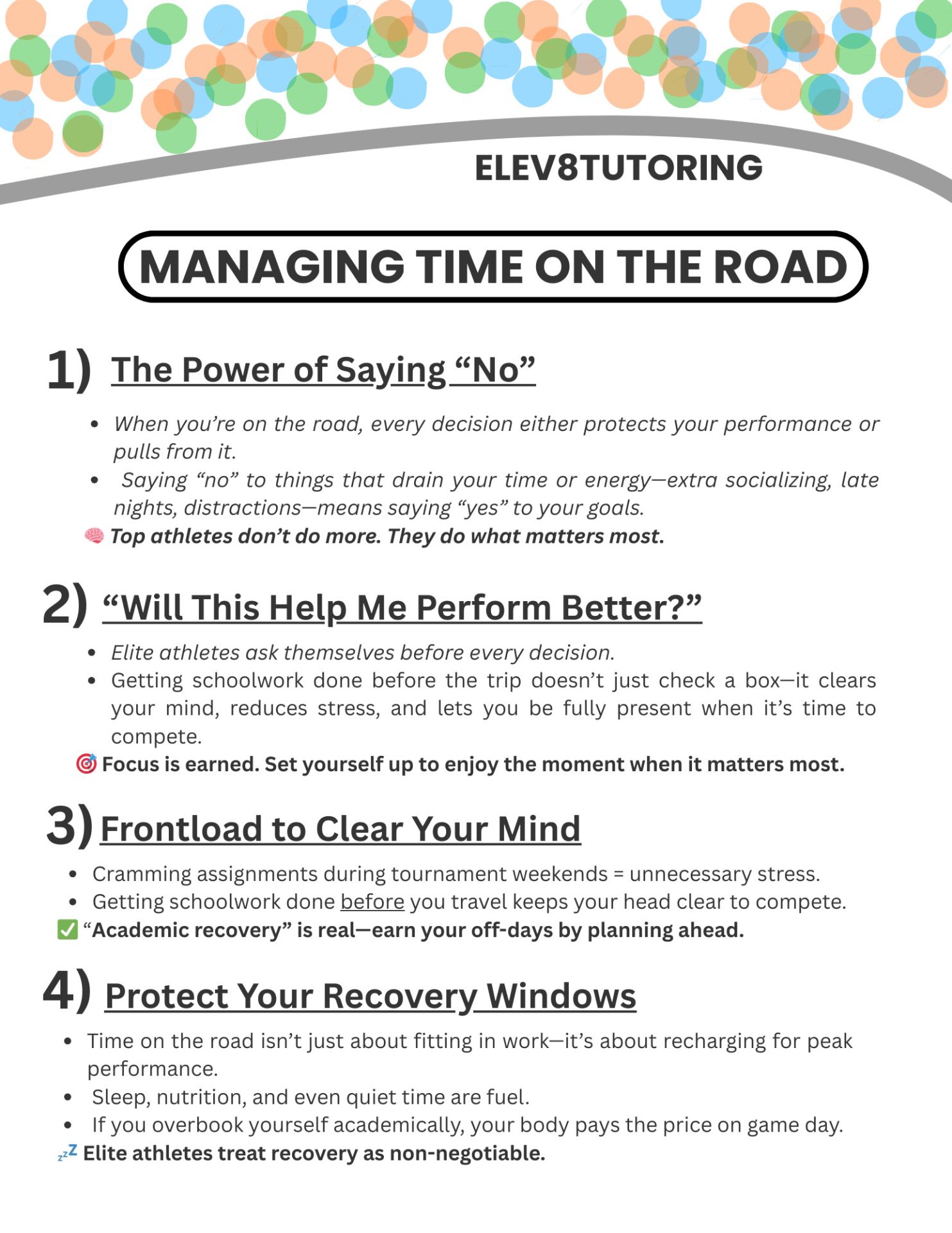 At Elev8Tutoring, we help student-athletes build systems that align with their travel demands and academic goals. If you need support managing your schoolwork on the road, we’re here to help—every mile of the way.